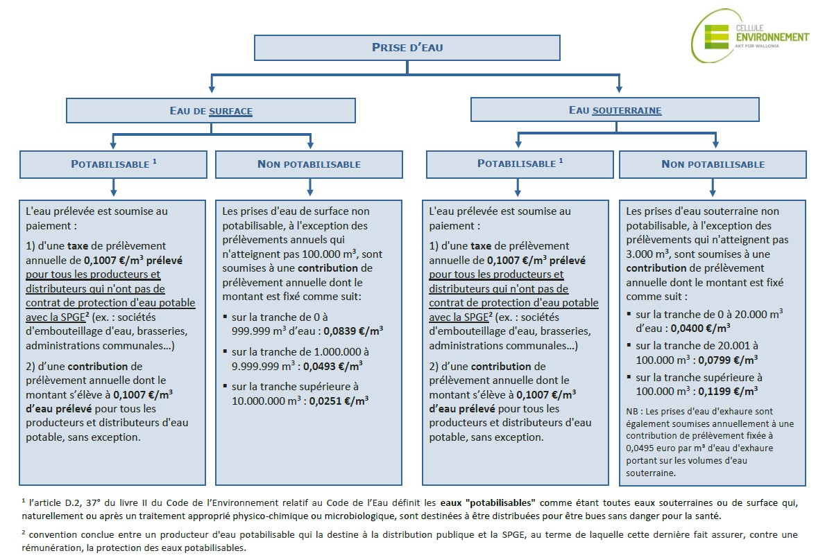 Afin de déterminer les montants de cette taxe, les entreprises exploitant une prise d’eau sont tenues de déclarer leur consommation d’eau annuelle au moyen d’un formulaire spécifique, à transmettre au Service Public de Wallonie.